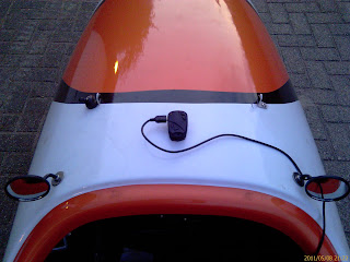 De nieuwe sleutelhangercamera heb ik maar eens wat bevestigingsmateriaal gegeven. Standaard is er klittenband bij geleverd en dat werkt natuurlijk heel mooi. Alleen wil ik liever geen extra stukken klittenband op m'n fiets. Vandaar dat ik weer met magneten aan de gang ben gegaan. Ik heb met wat rubber, wat polymaxkit, 2 magneten en een stuk klittenband een plaatje gemaakt waarop ik het cameraatje kan vastklitten. Vervolgens kleeft ik met behulp van de magneten de camera op de body van m'n fiets op de plek waar ik aan de binnenkant van de body ook 2 magneten gekit heb. In mijn geval op de neus en ook op de smurfenmuts.